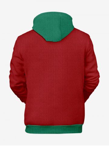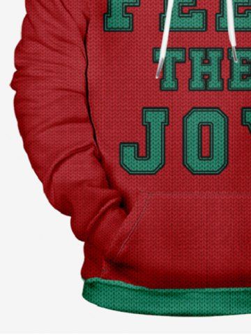 Plus Size Christmas Letters Textured Two Tone Print Pocket Drawstring Pullover Long Sleeves Hoodie For Men - Red - Xl