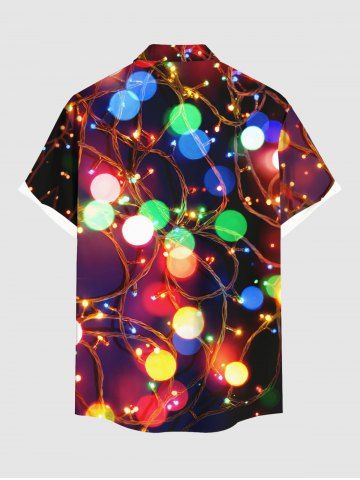 Plus Size Christmas Light Glitter 3D Print Buttons Pocket Shirt For Men - Black - S
