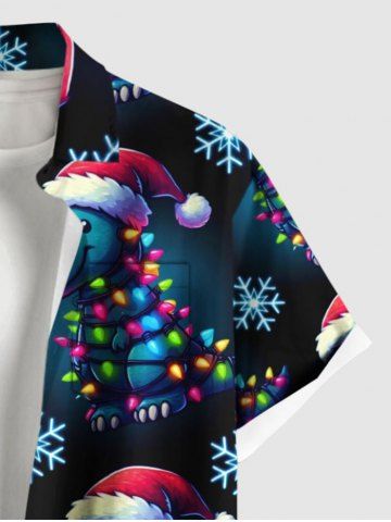 Plus Size Christmas Light Hat Snowflake Dinosaur Print Ombre Button Pocket Shirt For Men - Black - M