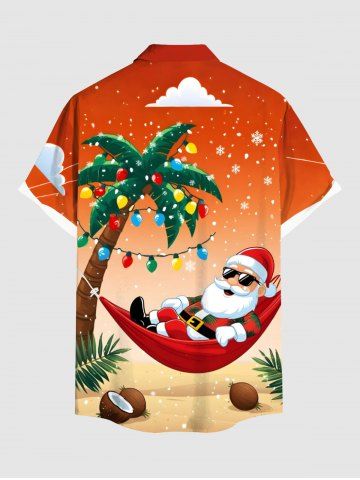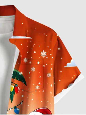 Plus Size Christmas Light Snowflake Santa Claus Coconut Tree Dip Dye Ombre Print Shirt For Men - Orange - M