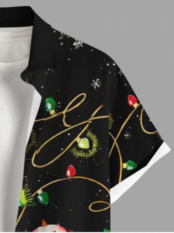 Plus Size Christmas Light Snowman Snowflake Colorblock Print Buttons Pocket Shirt For Men - Black - 3xl