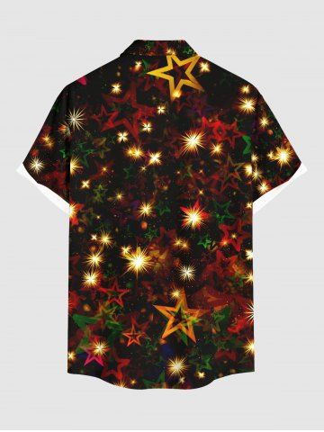 Plus Size Christmas Light Star Glitter 3D Print Buttons Pocket Shirt For Men - Black - Xl