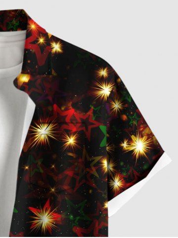 Plus Size Christmas Light Star Glitter 3D Print Buttons Pocket Shirt For Men - Black - 6xl