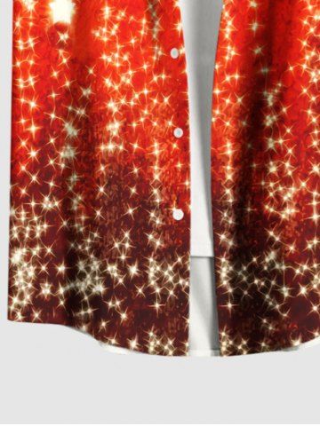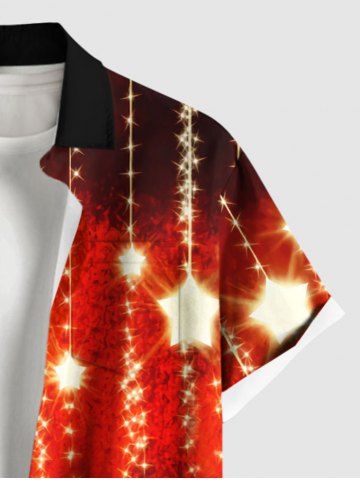 Plus Size Christmas Light Star Tassels Glitter 3D Print Buttons Pocket Shirt For Men - Red - M