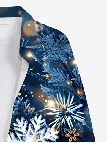 Plus Size Christmas Metallic Snowflake Flowers Glitter 3D Print Buttons Pocket Long Sleeve Shirt For Men - Deep Blue - 2xl