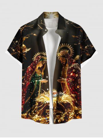 Men's Clothing > Plus Size Christmas Nativity of Jesus Print Button Pocket Shirt For Men