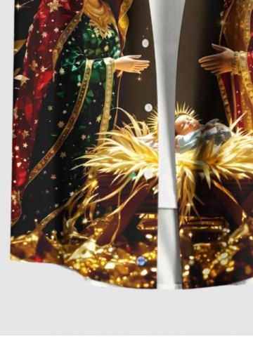 Men's Clothing > Plus Size Christmas Nativity of Jesus Print Button Pocket Shirt For Men