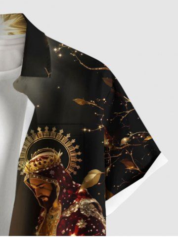 Men's Clothing > Plus Size Christmas Nativity of Jesus Print Button Pocket Shirt For Men