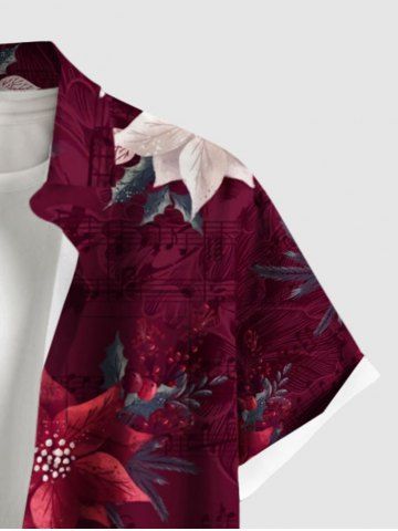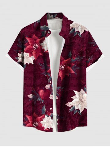 Plus Size Christmas Ombre Flower Leaf Print Button Pocket Shirt For Men - Red Wine - 3xl