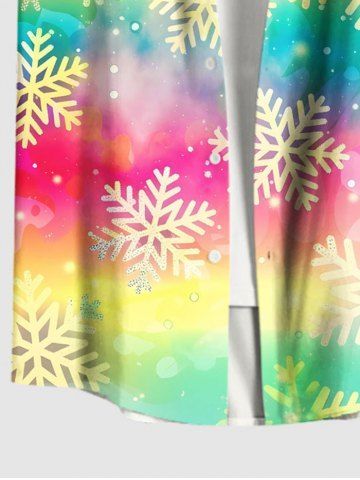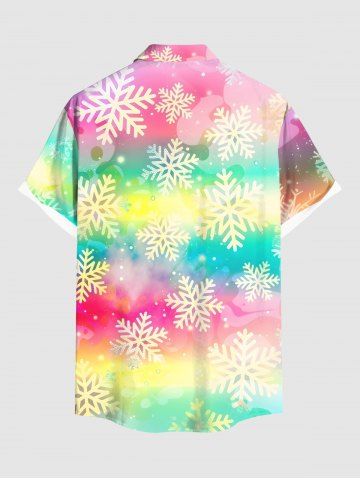 Plus Size Christmas Ombre Tie Dye Snowflake Print Buttons Pocket Shirt For Men - Multi-a - 5xl