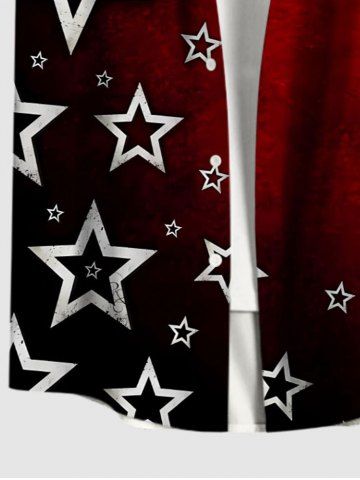 Plus Size Christmas Pentagram Star Print Tie Dye Ombre Button Pocket Shirt For Men - Black - S