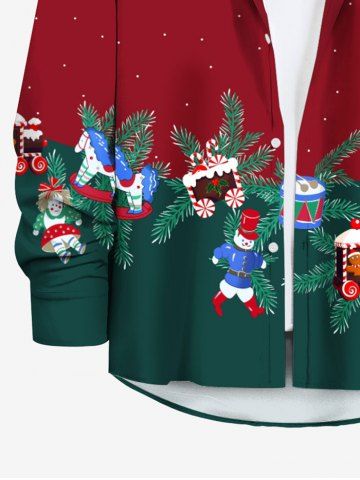 Plus Size Christmas Pine Needles Doll Drum Candy Print Buttons Pocket Long Sleeves Shirt For Men - Red - 7xl
