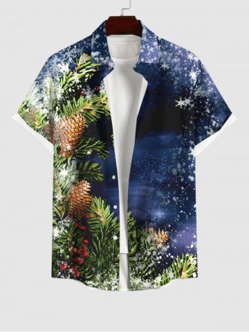 Men's Clothing > Plus Size Christmas Pinecone Holly Leaf Snowflake Print Ombre Button Pocket Shirt For Men