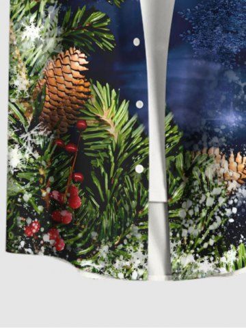 Men's Clothing > Plus Size Christmas Pinecone Holly Leaf Snowflake Print Ombre Button Pocket Shirt For Men