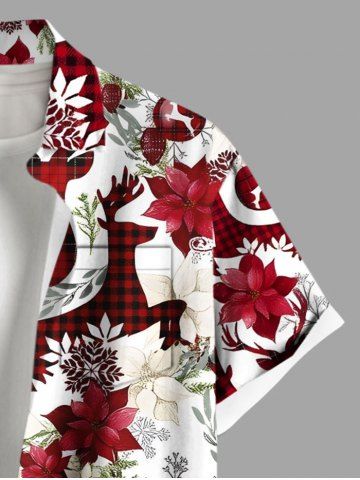 Men's Clothing > Plus Size Christmas Plaid Elk Flowers Snowflake Print Buttons Pocket Shirt For Men