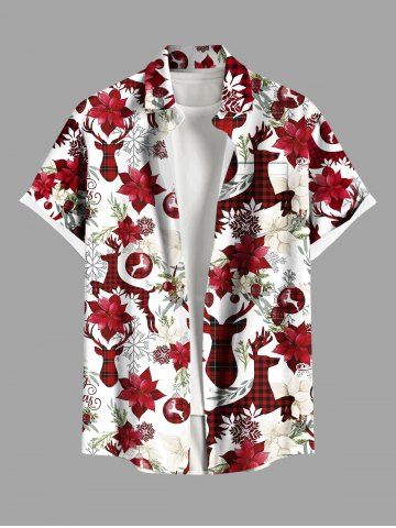 Plus Size Christmas Plaid Elk Flowers Snowflake Print Buttons Pocket Shirt For Men - Red - 4xl