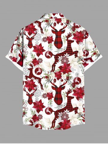 Plus Size Christmas Plaid Elk Flowers Snowflake Print Buttons Pocket Shirt For Men - Red - 5xl