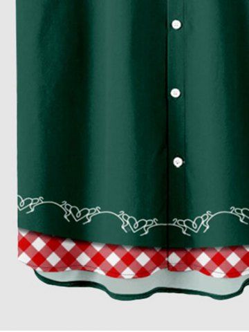 Plus Size Christmas Plaid Lace Up Print Button Pocket Shirt For Men - Green - L