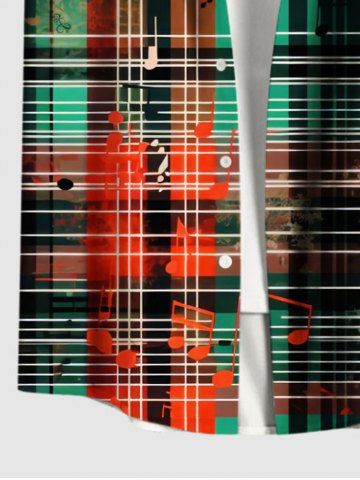 Men's Clothing > Plus Size Christmas Plaid Music Symbol Print Button Pocket Shirt For Men