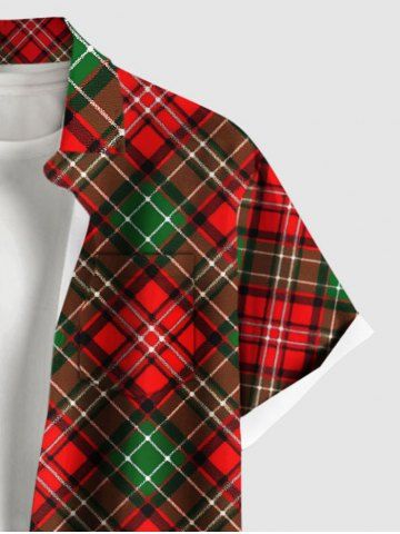 Plus Size Christmas Plaid Print Buttons Pocket Shirt For Men - Red - S
