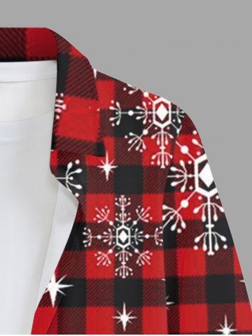 Plus Size Christmas Plaid Snowflake Colorblock Print Buttons Pocket Long Sleeve Shirt For Men - Red - 8xl
