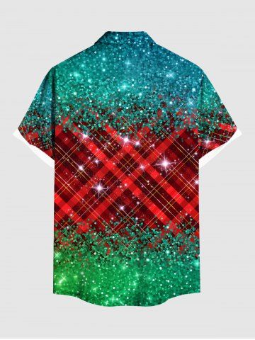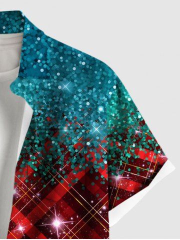 Plus Size Christmas Plaid Star Sparkling Sequin Glitter 3D Print Buttons Pocket Shirt For Men - Green - L