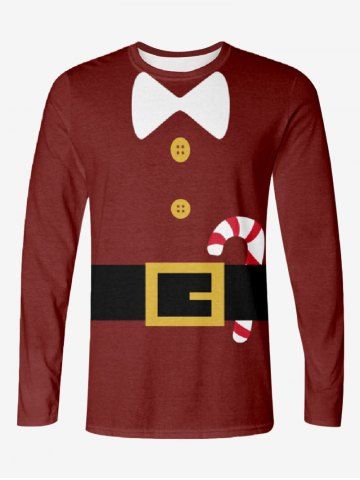 Men's Clothing > Plus Size Christmas Santa Claus Candy Bowknot Belt Print T-shirt For Men