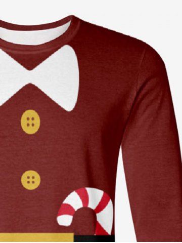 Plus Size Christmas Santa Claus Candy Bowknot Belt Print T-shirt For Men - Red - 6xl