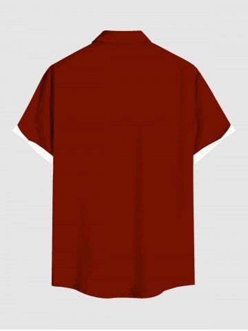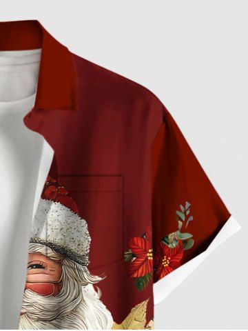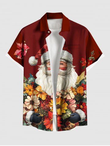 Plus Size Christmas Santa Claus Colorful Flower Print Button Pocket Shirt For Men - Red - M