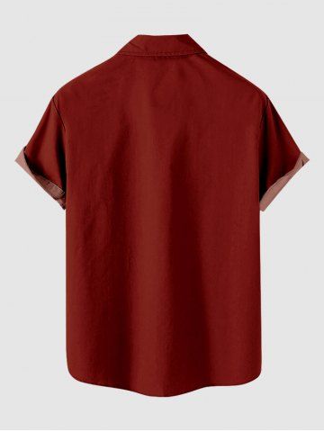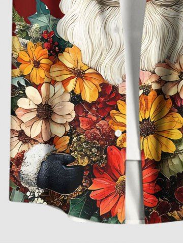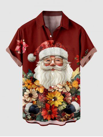 Plus Size Christmas Santa Claus Colorful Flower Print Button Pocket Shirt For Men - Red - 4xl