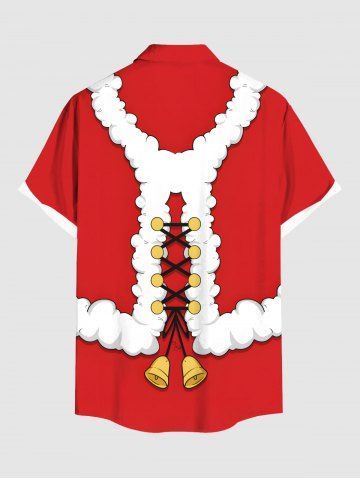 Plus Size Christmas Santa Claus Costume Bell Lace Up 3D Print Buttons Pocket Shirt For Men - Red - 6xl