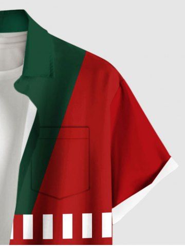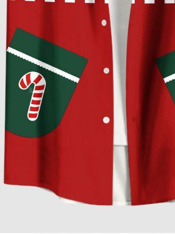 Plus Size Christmas Santa Claus Costume Candy Print Button Pocket Shirt For Men - Red - 4xl