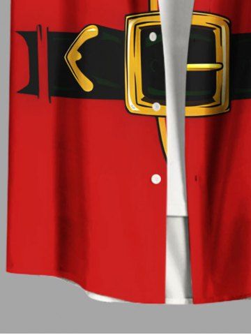 Plus Size Christmas Santa Claus Costume Candy Print Button Pocket Shirt For Men - Red - 2xl