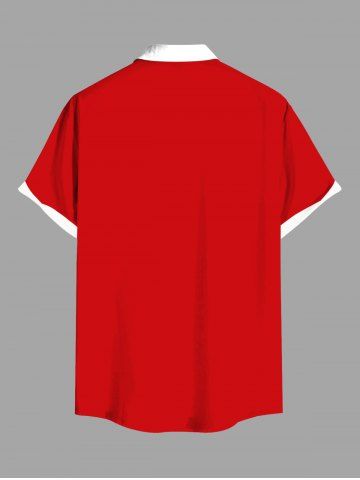 Plus Size Christmas Santa Claus Costume Candy Print Button Pocket Shirt For Men - Red - 4xl
