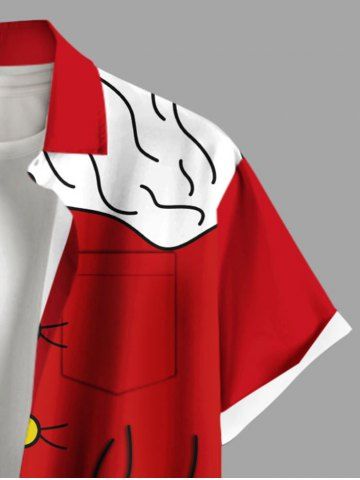 Plus Size Christmas Santa Claus Costume Print Buttons Pocket Shirt For Men - Red - S