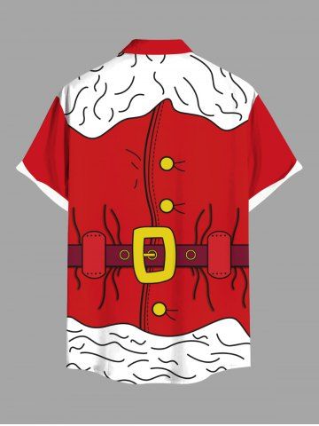 Plus Size Christmas Santa Claus Costume Print Buttons Pocket Shirt For Men - Red - 3xl