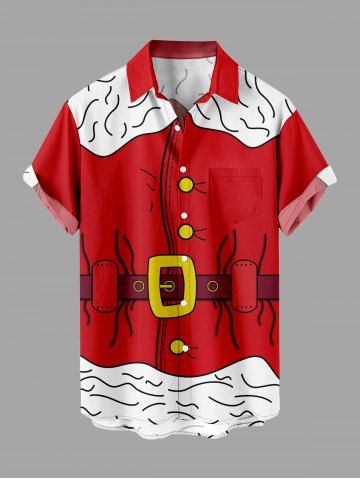 Plus Size Christmas Santa Claus Costume Print Buttons Pocket Shirt For Men - Red - 5xl