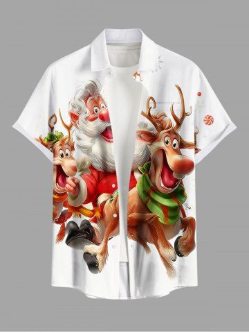 Plus Size Christmas Santa Claus Elk Candy Print Buttons Pocket Shirt For Men - White - 5xl