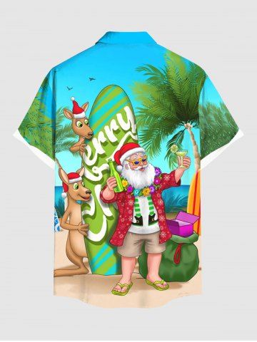 Plus Size Christmas Santa Claus Elk Coconut Tree Print Buttons Pocket Shirt For Men - Light Blue - 3xl