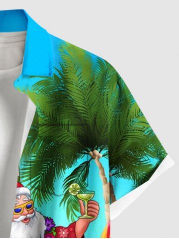 Plus Size Christmas Santa Claus Elk Coconut Tree Print Buttons Pocket Shirt For Men - Light Blue - 5xl