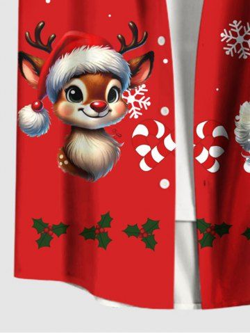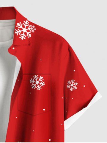 Plus Size Christmas Santa Claus Elk Snowflake Holly Fruit Print Buttons Pocket Shirt For Men - Red - M