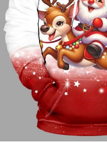 Men's Clothing > Plus Size Christmas Santa Claus Elk Star Print Pocket Drawstring Hoodie For Men