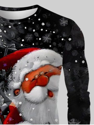 Plus Size Christmas Santa Claus Gift Box Two Tone Colorblock Print T-shirt - Black - S