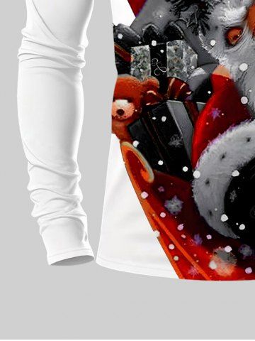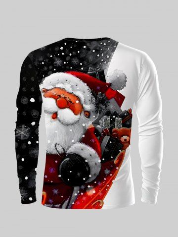 Plus Size Christmas Santa Claus Gift Box Two Tone Colorblock Print T-shirt - Black - M