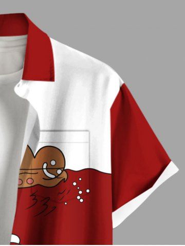 Plus Size Christmas Santa Claus Gingerbread Colorblock Print Buttons Pocket Shirt For Men - Red - 2xl