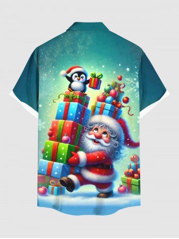 Plus Size Christmas Santa Claus Penguin Snowflake Print Buttons Pocket Shirt For Men - Green - 5xl
