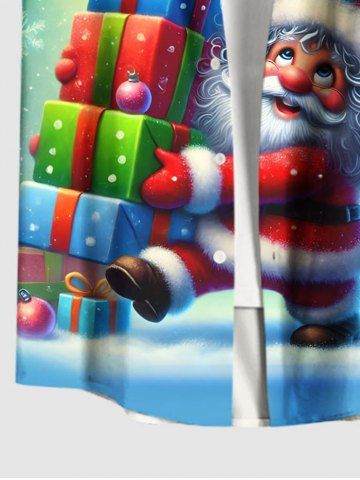 Men's Clothing > Plus Size Christmas Santa Claus Penguin Snowflake Print Buttons Pocket Shirt For Men