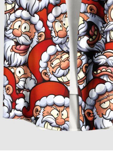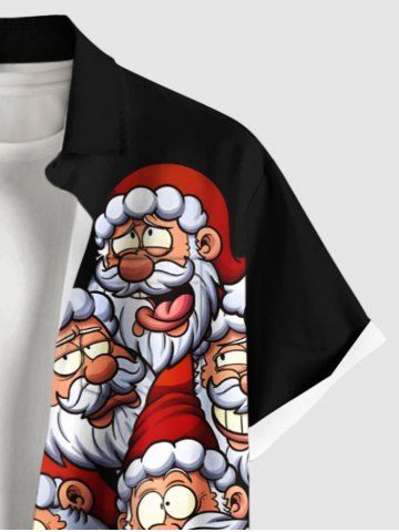 Plus Size Christmas Santa Claus Print Buttons Pocket Shirt For Men - Black - S