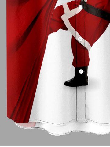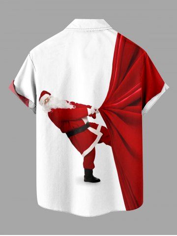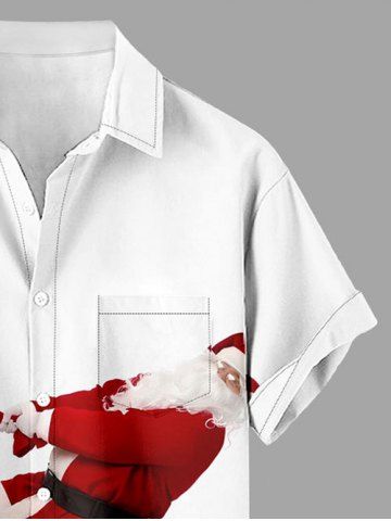 Plus Size Christmas Santa Claus Pulling Print Button Pocket Shirt For Men - White - S