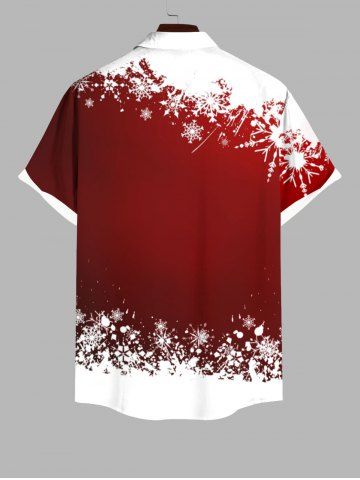 Plus Size Christmas Santa Claus Sacks Squirrel Snowflake Colorblock Print Buttons Pocket Shirt For Men - Red - 2xl